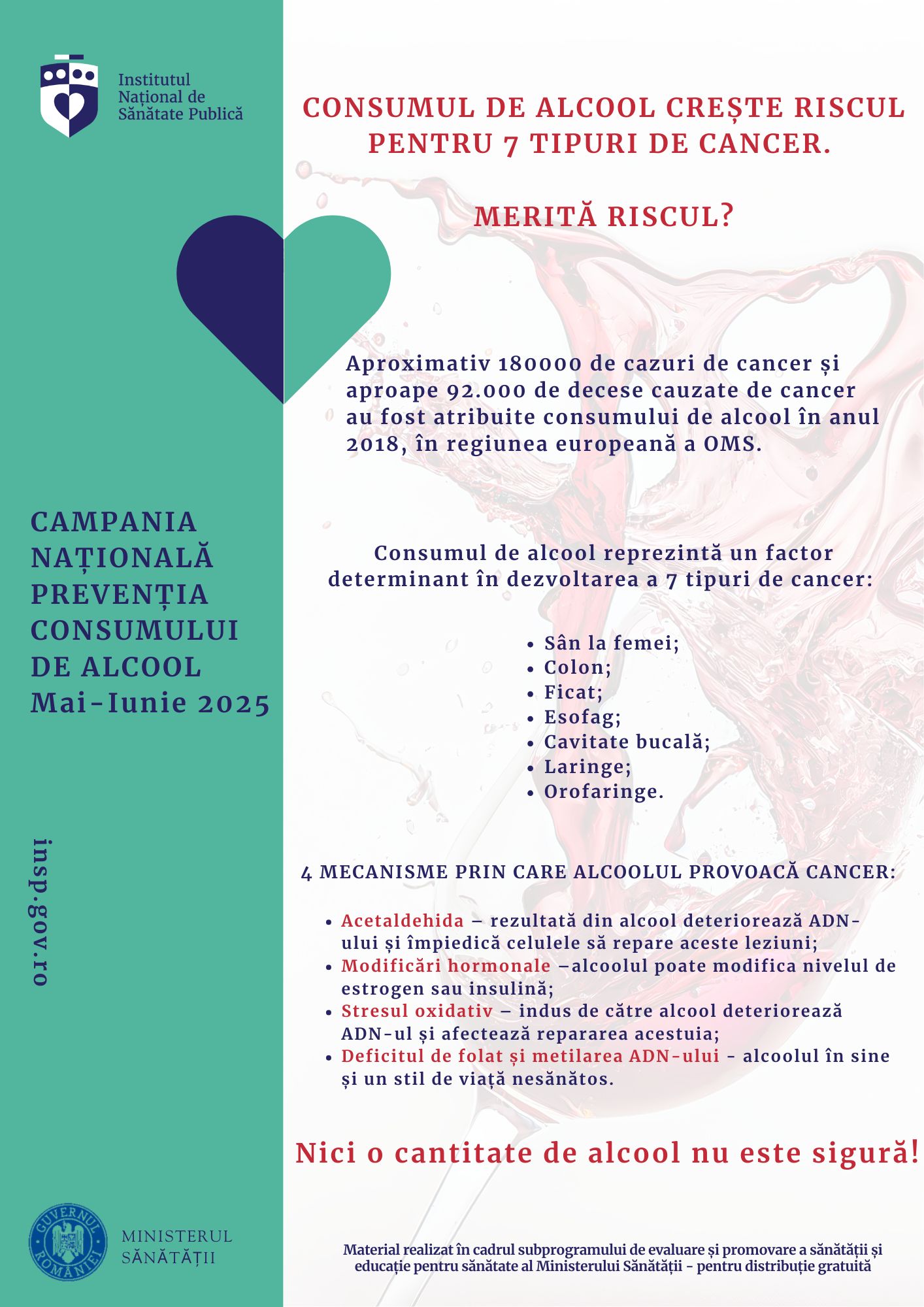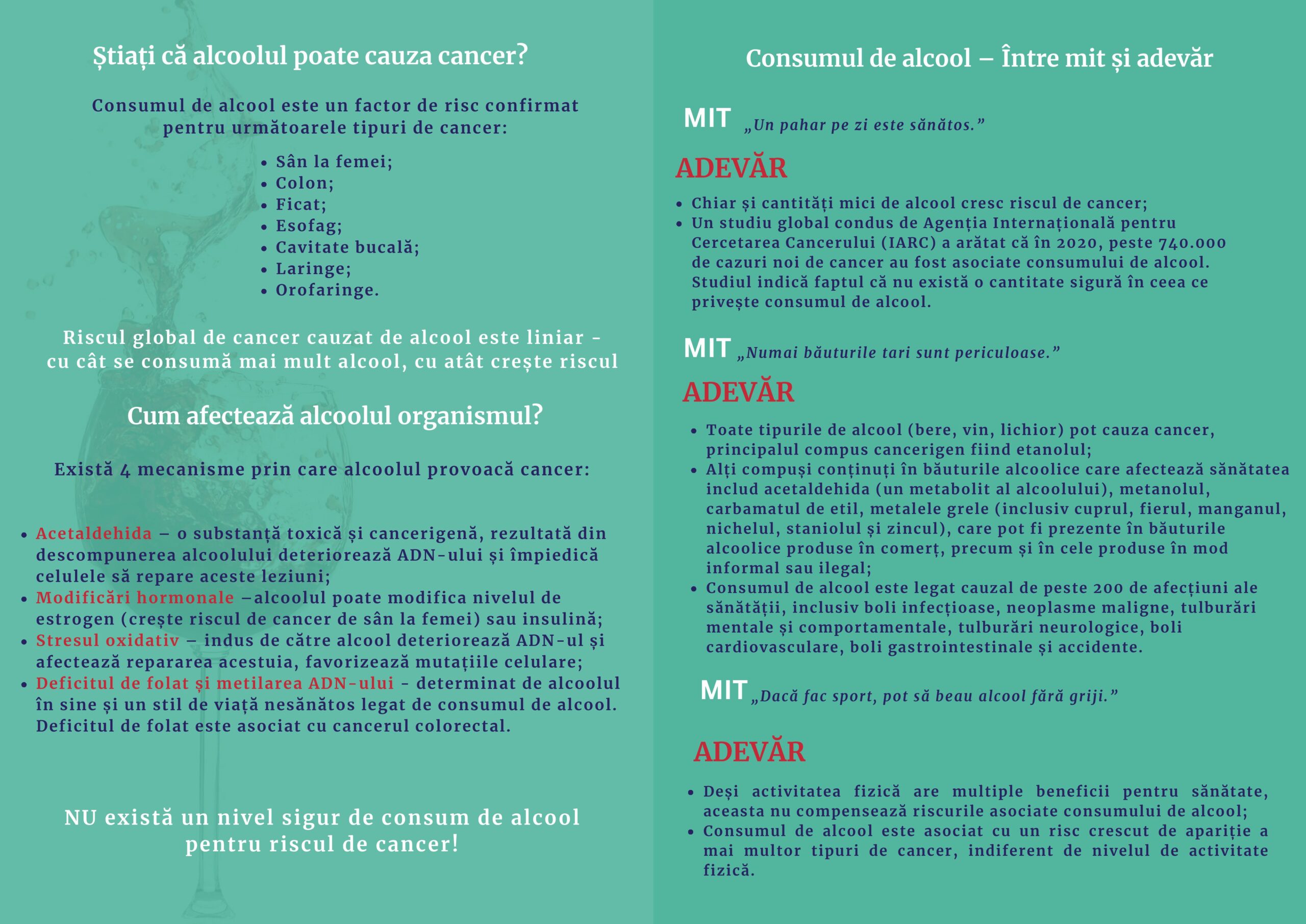 - Prima picătură de alcool, primul risc pentru sănătatea ta! Nici o cantitate de alcool nu este sigură pentru consum.